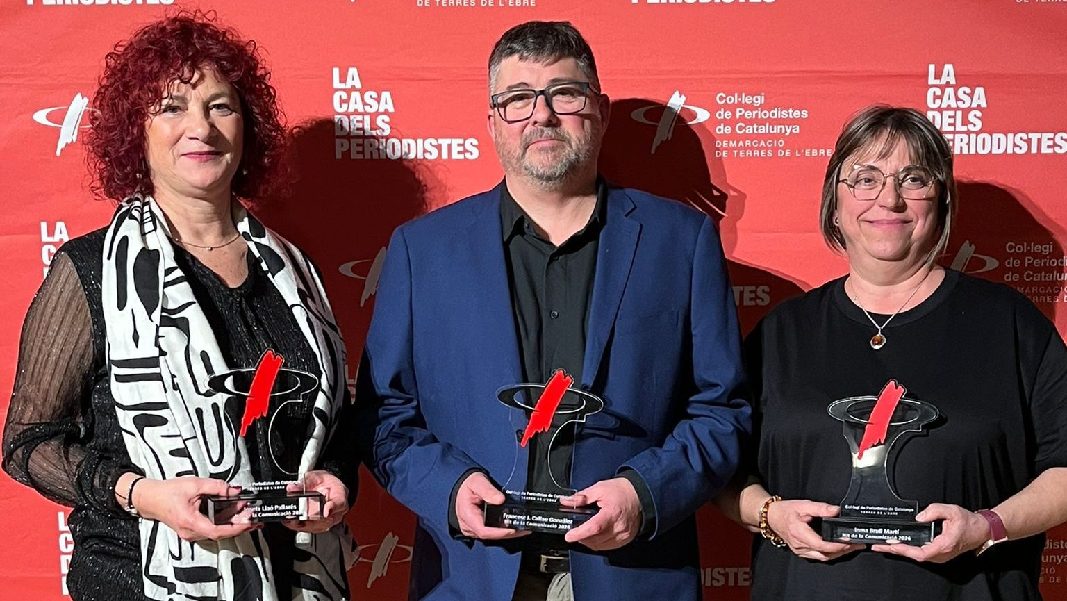 El Col·legi de Periodistes de Catalunya va reconèixer la trajectòria professional de tres veus de la comunicació de proximitat a les Terres de l’Ebre: Fini Llaó, Inma Brull i Francesc Callau, professionals de la Cala Ràdio, amb més de quatre dècades de dedicació a la ràdio local.