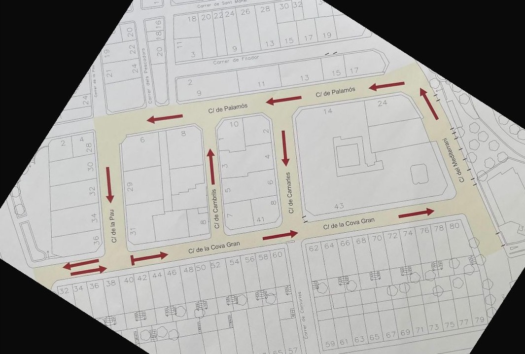 Així doncs, els canvis que entren en vigor dijous són que el carrer Cova Gran passa a tenir sentit cap al mar, el carrer Mediterrani en direcció a la plaça del Dofí i el carrer Palamós en sentit muntanya.